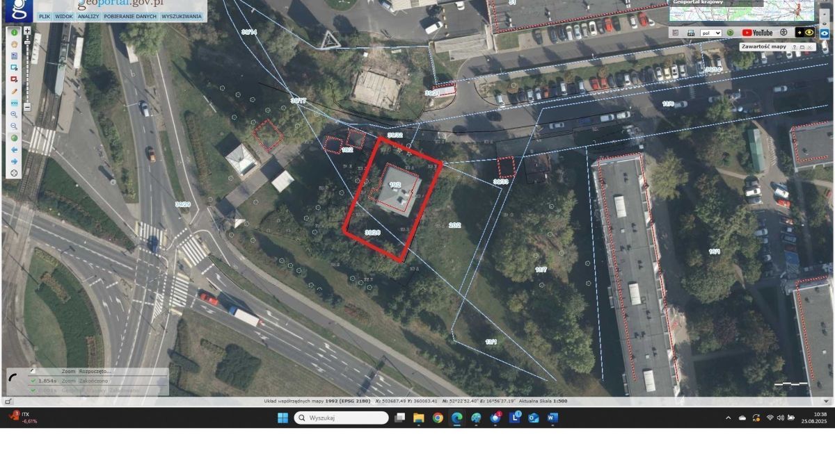 Działka o powierzchni 624 m2 zabudowana budynkiem mieszkalnym wielorodzinnym.