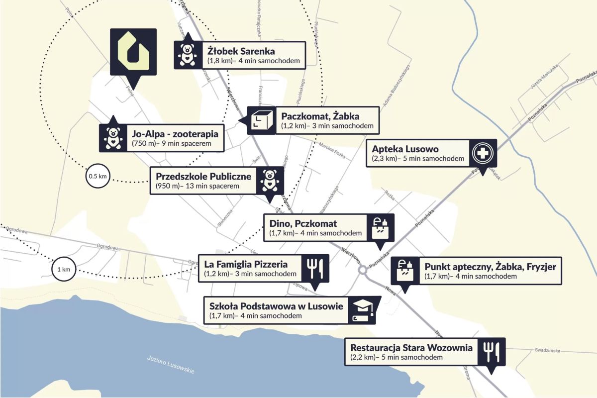 - Jezioro Lusowskie oddalone o 4 min samochodem,