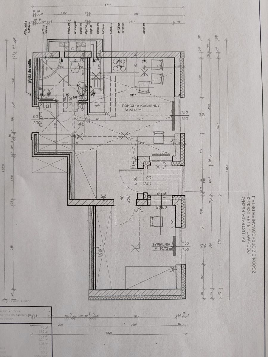 - pokoju z aneksem kuchennym - 22,48 m2;