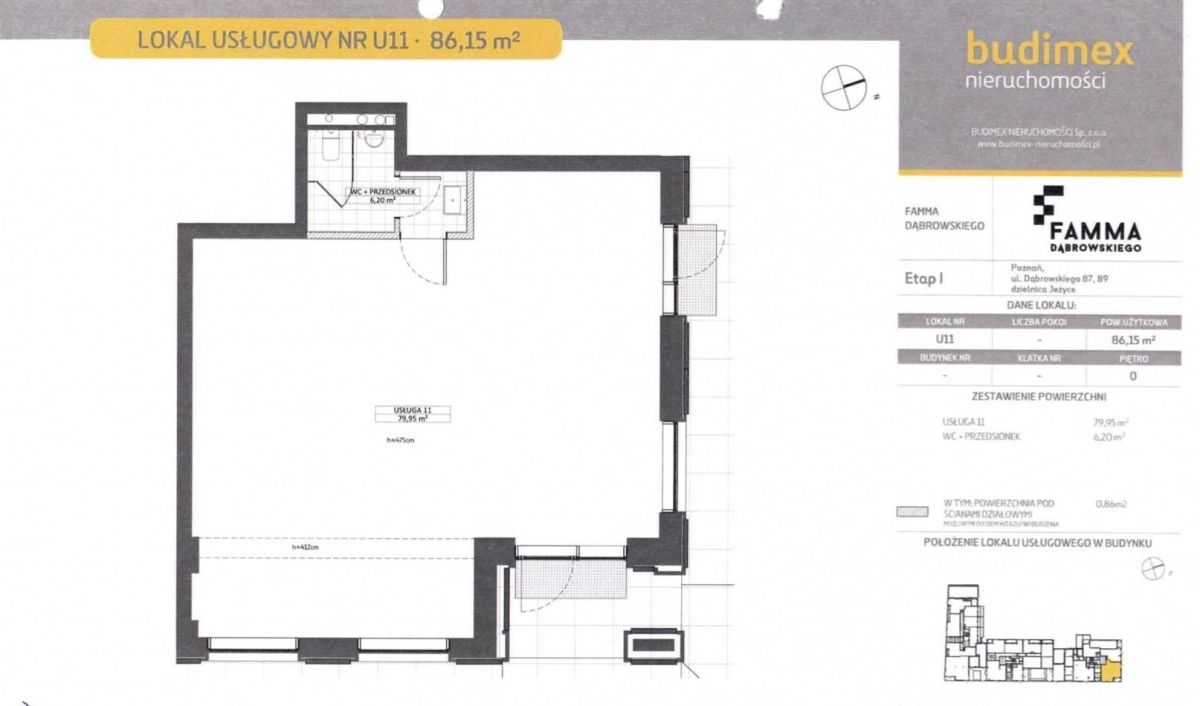 FAMMA Dąbrowskiego 87-89, nowoczesny apartamentowiec z 2022 roku, lokal użytkowy numer U11.